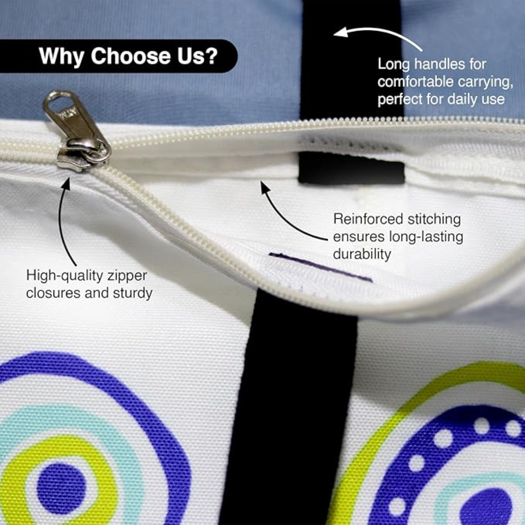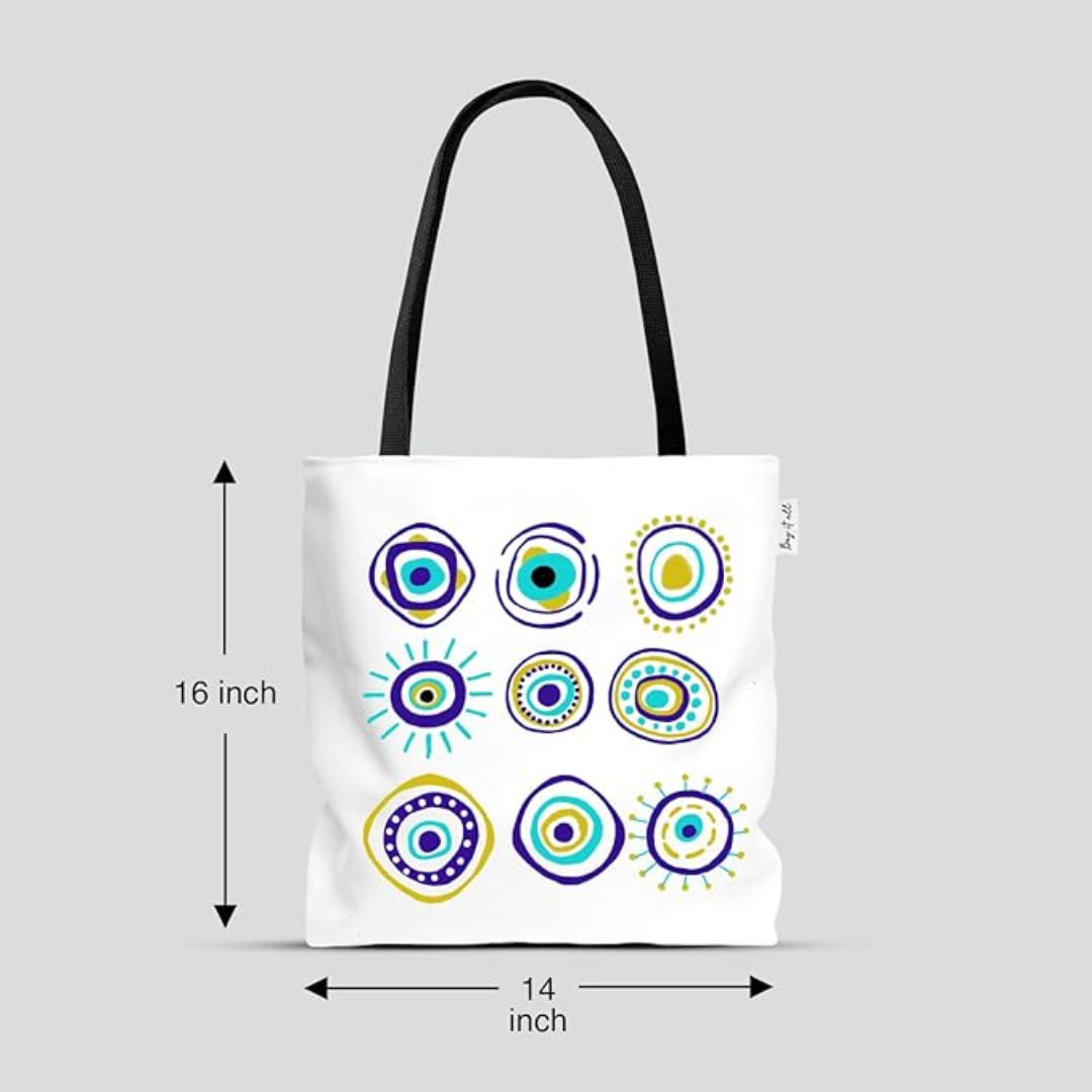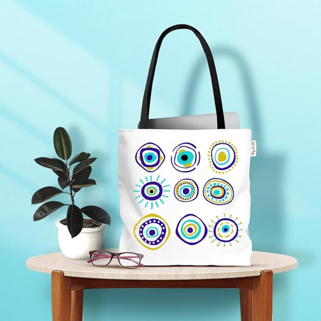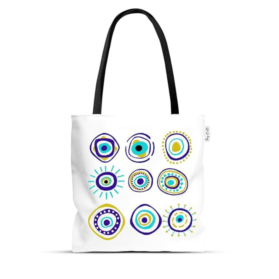 Ward off bad vibes and serve main character energy with the Evil Eye Design Tote. Adorned with a mystical motif in bold blues and whites, this tote is your everyday amulet with just the right touch of attitude.