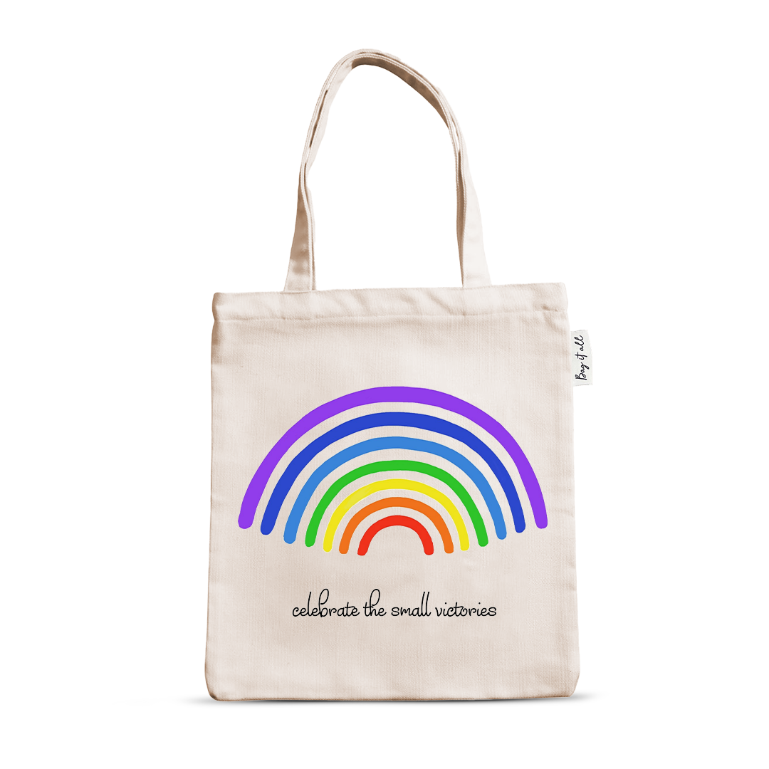 A feel-good rainbow tote that reminds you: progress is still progress.